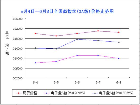 正如現(xiàn)貨一樣,由于說外盤影響,周一盤面較之上周出現(xiàn)跌價,隨后,在市場作用下,盤面出現(xiàn)回暖,而達到上周本價位之后,行情再次凄涼,周末市場主力開始轉(zhuǎn)綠。本周數(shù)據(jù):嘉興市場0925周初結(jié)算價308100元/噸,周末結(jié)算價309900元/噸,整體上漲1900元/噸;(2013)0325周初結(jié)算價314100元/噸,周末結(jié)算價316500元/噸,整體漲2400元/噸。本周整體盤面的上漲并不意味著繭絲市場開始回暖,這一點從現(xiàn)貨的疲軟就可看出,并且,外圍方面也未出現(xiàn)漲價的支撐。上周出口消息,受全球市場持續(xù)不景氣的影響,我國真絲綢商品出口不斷下滑,4月的出口額為2.49億美元,同比、環(huán)比均為負(fù)增長,分別下降了16.63%和8.37%,繭絲行業(yè)出口形勢較嚴(yán)峻。繭絲綢消費市場的疲軟是對國內(nèi)繭絲市場最致命的打擊。