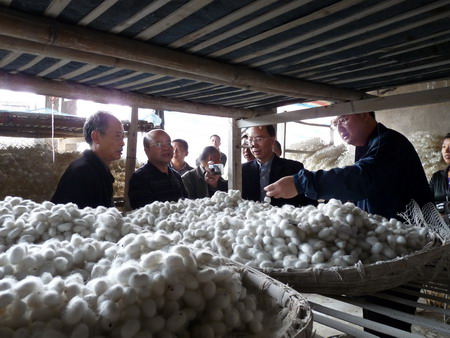 為加快工廠化養(yǎng)蠶技術研發(fā),10月27日正值晚秋養(yǎng)蠶上蔟之際,四川大學專家組一行深入青神縣調(diào)研農(nóng)村規(guī);B(yǎng)蠶技術推廣情況,專家組到種桑30畝、年養(yǎng)蠶60張的2戶專業(yè)種養(yǎng)大戶就技術操作、勞動用工、消毒防病、養(yǎng)蠶收入等進行詳細調(diào)查,聽取蠶農(nóng)對種桑養(yǎng)蠶技術革新的迫切需求和意見。