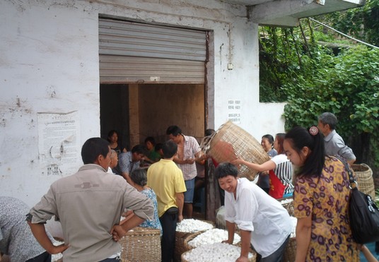 6月3日,宜賓市高縣嘉樂(lè)鎮(zhèn)春季蠶繭收購(gòu)開秤,前來(lái)售繭的蠶農(nóng)或推獨(dú)輪車、或背或挑、或用車輛運(yùn)輸,絡(luò)繹不絕,在蠶繭收購(gòu)站里打起了涌堂。