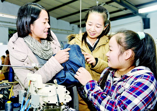 12月20日,惠民縣何坊街道創(chuàng)業(yè)園的一家服裝企業(yè)生產(chǎn)車間內(nèi),女工正在查看剛剛加工好的牛仔裝,這些產(chǎn)品將出口日韓。
