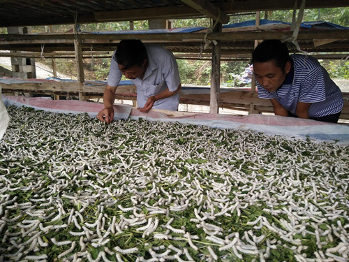技術(shù)員入戶指導(dǎo)蠶農(nóng)飼養(yǎng)第一批夏蠶
