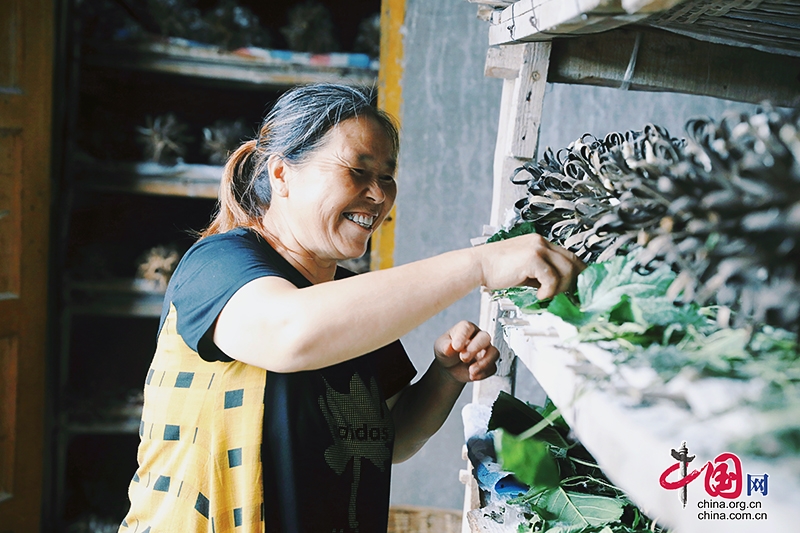 走進朱勤英家的蠶房,一排排蠶架擺放有序,這一季蠶寶即將吐絲成繭。“每天早上5點就起床采摘桑葉,一天至少要采摘15背簍才夠這些好胃口的蠶寶貝們吃,雖然辛苦,但心里覺得日子就像頭頂?shù)奶,灼熱,有奔頭”朱勤英說。