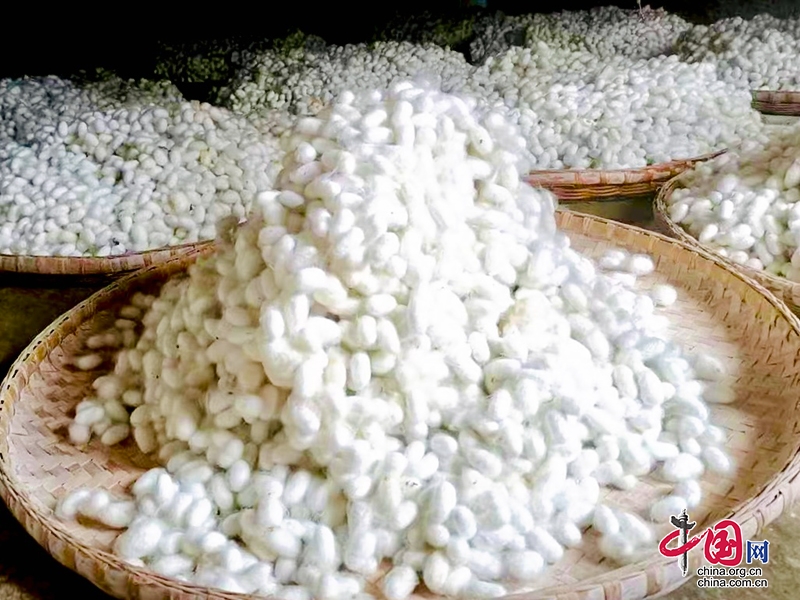 “我們村現(xiàn)在養(yǎng)蠶的農(nóng)戶已經(jīng)有60多戶了,以前桑樹品種良莠不齊,但是通過品種改良和技術(shù)培訓,現(xiàn)在這些桑樹質(zhì)量高、抗性強,產(chǎn)量也比較高。蠶絲銷售也不愁,基本上家門口就被收購商買走了。”徐家村委委員何裕會介紹道。