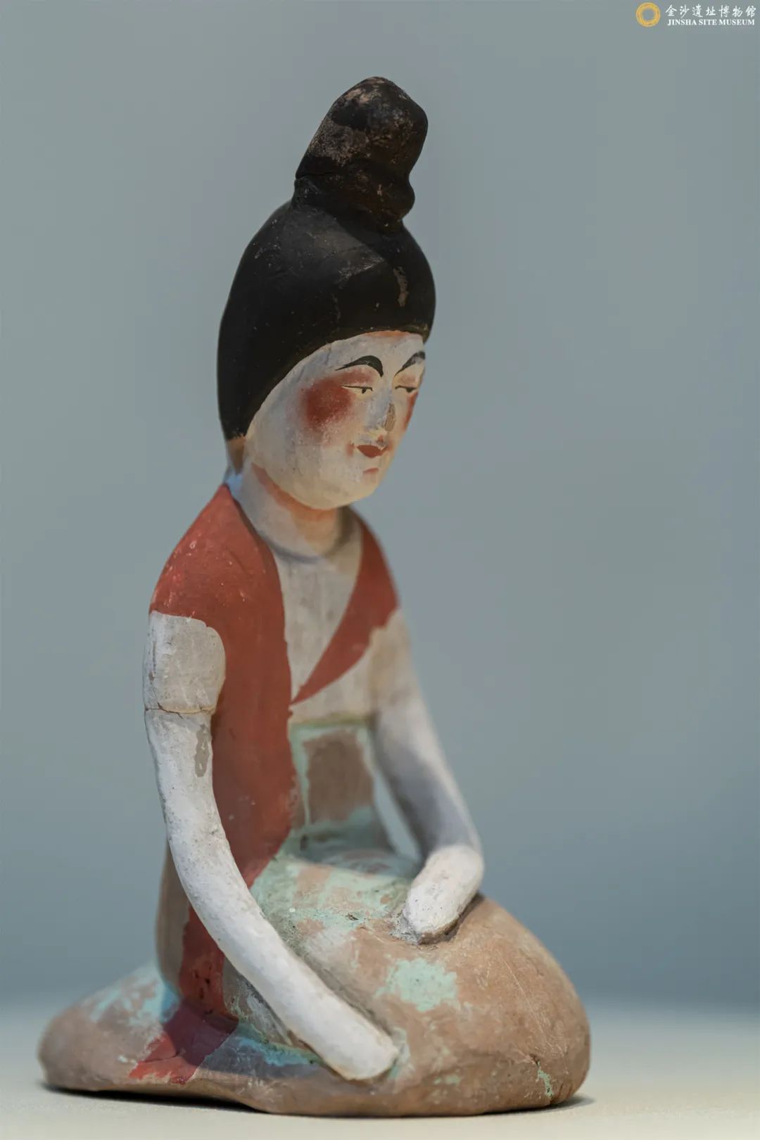 此外,展覽中,不少色彩鮮艷、造型各異的人俑也吸引了觀眾的目光。這些人俑或騎馬或站立,妙趣橫生。還有成套的“唐代女工”——彩繪勞動?jì)D女俑群(復(fù)制件),非常罕見且清楚地呈現(xiàn)了從舂糧到烙餅的全部過程,是研究新疆古代社會生活、雕塑藝術(shù)及飲食文化不可多得的實(shí)物資料。