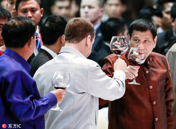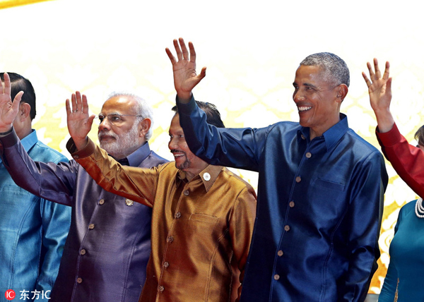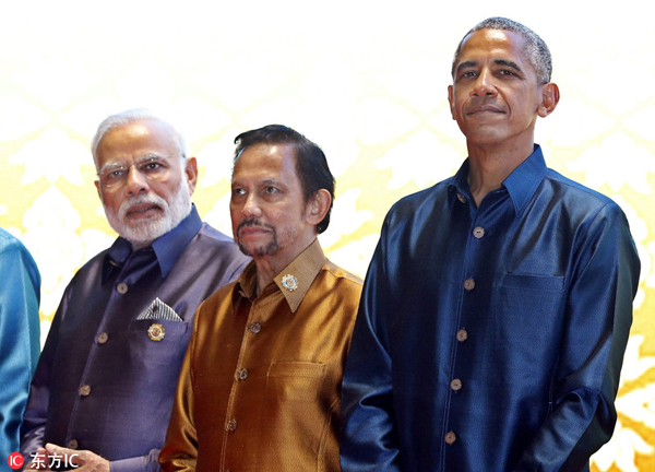 當(dāng)?shù)貢r(shí)間2016年9月7日,老撾萬象,各國領(lǐng)導(dǎo)人出席第28屆和第29屆東盟峰會(huì)晚宴。