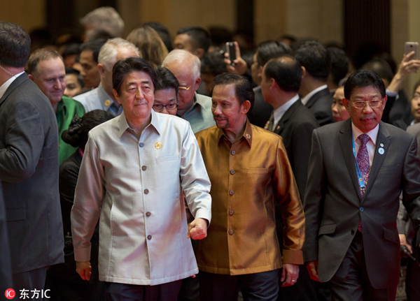 各國領(lǐng)導(dǎo)人著傳統(tǒng)服裝出席東盟峰會(huì)晚宴