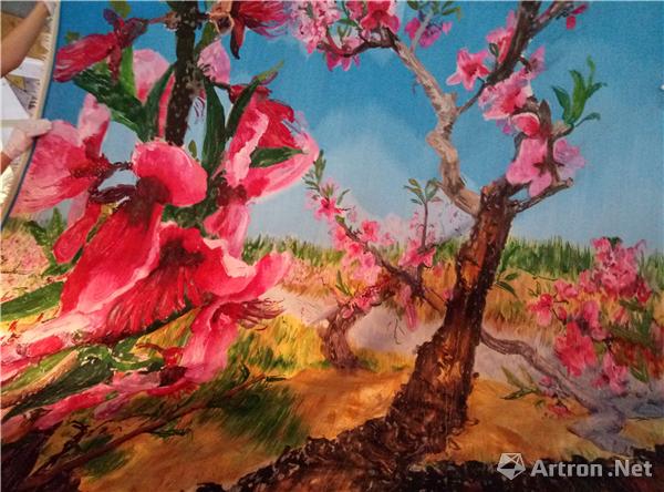 據(jù)LINDA回憶,在一次在藝術(shù)家丁乙的展覽上,她向藝術(shù)家介紹了緙絲,并將他的十示作品用緙絲表現(xiàn)了出來(lái)。雖然只有5cmx10cm大小的尺寸,卻耗時(shí)三個(gè)月,顏色多達(dá)80余種,這讓丁乙欣慰不已,同意將自己的作品用緙絲的形式表現(xiàn)出來(lái);同樣被緙絲折服的還有藝術(shù)家周春芽,他將自己的桃花作品也交予LINDA進(jìn)行緙絲的制作,此次展覽現(xiàn)場(chǎng)最大的緙絲作品便是他的桃花(200cm×280cm)。“這些當(dāng)代最優(yōu)秀的藝術(shù)家他們的欣然同意,就是因?yàn)樗麄冇兄活w傳播傳統(tǒng)文化的責(zé)任心”,她如是談到。