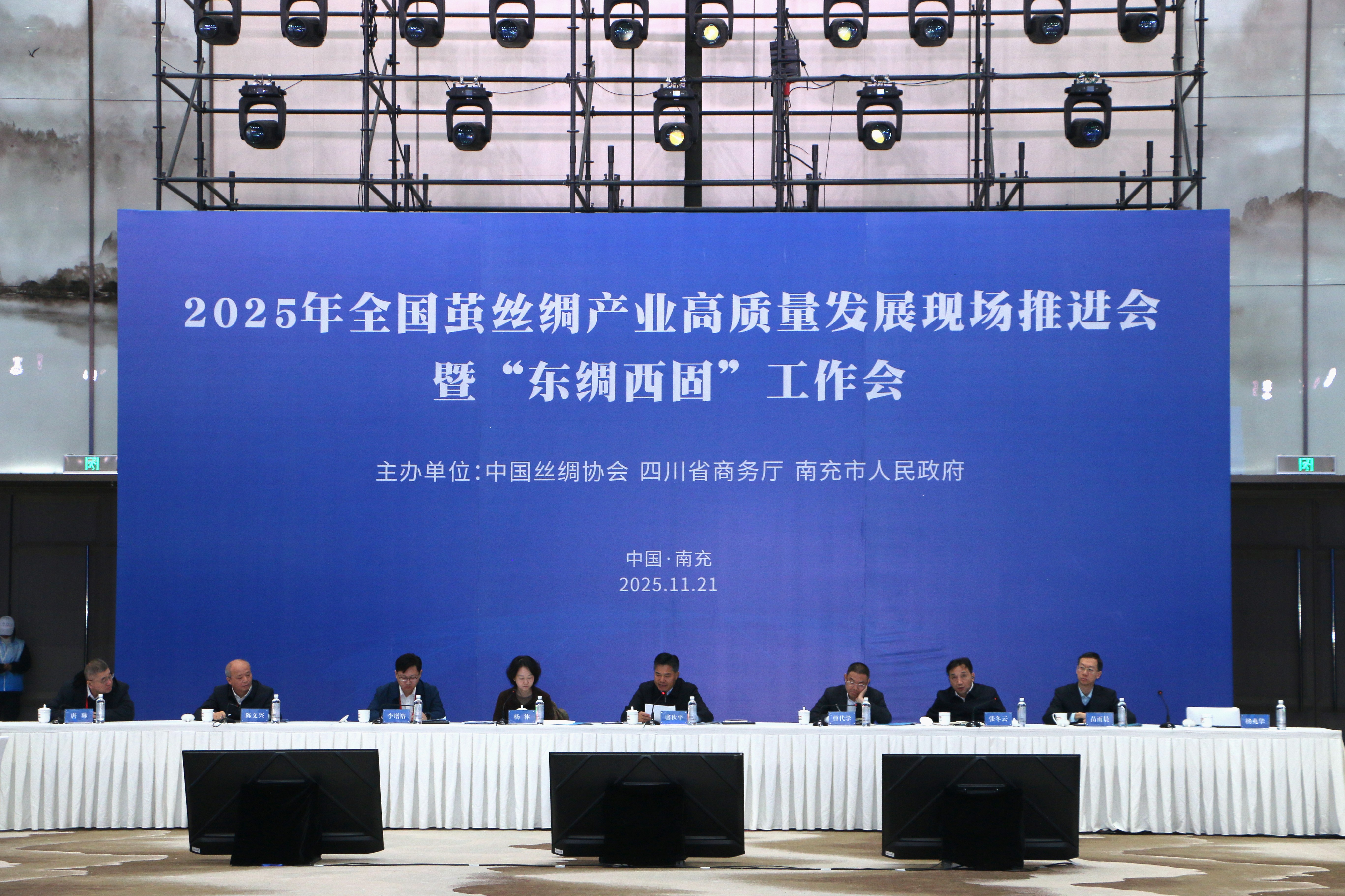 2025年11月21日,由中國(guó)絲綢協(xié)會(huì)、四川省商務(wù)廳、南充市人民政府主辦的全國(guó)繭絲綢產(chǎn)業(yè)高質(zhì)量發(fā)展現(xiàn)場(chǎng)推進(jìn)會(huì)暨“東綢西固”工作會(huì)在四川南充舉行。來(lái)自農(nóng)業(yè)農(nóng)村部、工業(yè)和信息化部以及江蘇、浙江、廣西、重慶、安徽、云南、廣東、山東、河南、遼寧等全國(guó)繭絲綢主產(chǎn)。ㄊ、區(qū))的行業(yè)主管部門、高校院所、企事業(yè)單位的相關(guān)領(lǐng)導(dǎo)、專家學(xué)者及企業(yè)家代表共計(jì)300余人參加會(huì)議,共謀繭絲綢產(chǎn)業(yè)發(fā)展新布局、共享“東綢西固”戰(zhàn)略新機(jī)遇。商務(wù)部黨組成員、副部長(zhǎng)盛秋平出席會(huì)議并講話,四川省人民政府副秘書(shū)長(zhǎng)曹代學(xué)、南充市委書(shū)記張冬云到會(huì)致辭。商務(wù)部消費(fèi)促進(jìn)司司長(zhǎng)、國(guó)家繭絲辦主任楊沐主持會(huì)議。